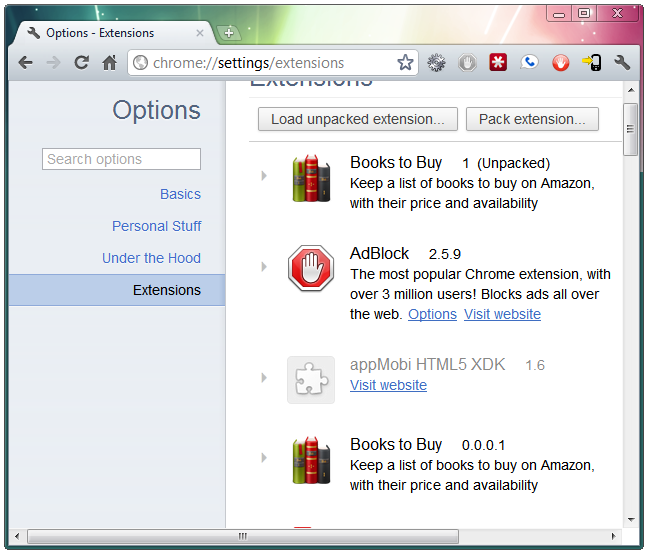 Note: this is part 3 of the Bookshelf Project I’m working on. Part 1 was a Chrome app “Hello, World” equivalent, and part 2 added basic functionality. This part will finally call an Amazon Web Service via JavaScript.
